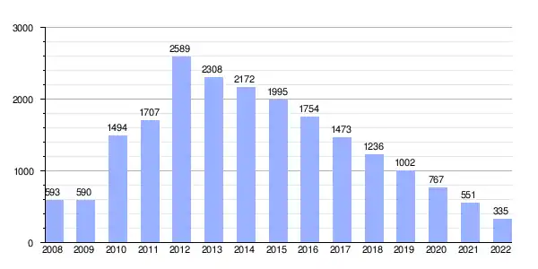 | Gráfica de evolución de la deuda viva del Ayuntamiento de Archidona entre 2008 y 2022 |