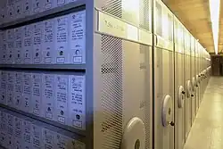Los documentos se custodian en tres depósitos rectangulares, distribuidos en tres plantas simétricas y dotados con estanterías compactas, con la siguiente capacidad: Depósito de la planta baja (6.120 cajas), depósito de la planta primera (7.920 cajas) y depósito de la planta tercera (7.920 cajas). Las cajas a las que nos referimos son de tamaño folio prolongado.