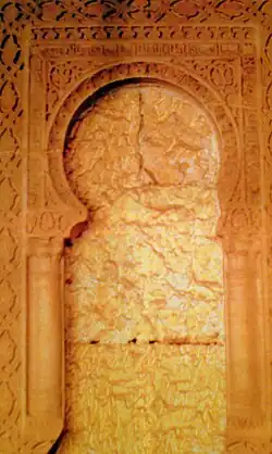 Se trata de un arco de herradura, hecho con una pieza rectangular de alabastro blanco, donde todavía se pueden observar algunos restos de policromía. Se sostiene sobre dos pequeñas columnas, con capiteles decoradas con hojas. En la arquivolta se puede leer una inscripción en árabe.[3] Como elementos decorativos adicionales, el arco presenta una cenefa alrededor, realizada con motivos vegetales estilizados, así como una trenza en la parte superior. Su estado de conservación es bueno.