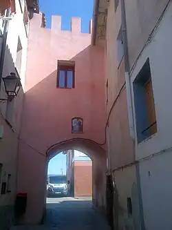 Se trata de una puerta-torre de origen medieval que formaba parte de la muralla que defendía la Villa desde la Edad Media y hasta la segunda mitad del siglo XIX, pasadas las Guerras Carlistas.[1] Es la puerta de acceso al casco antiguo de la localidad por el norte, viniendo desde las vecinas localidades de Moros por las vegas de Santa Lucía.