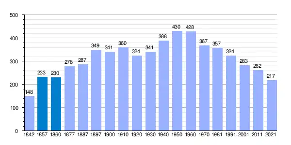 | Gráfica de evolución demográfica de Arcos de la Polvorosa[9] entre 1842 y 2021 |