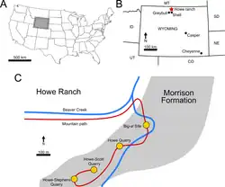 - ↑ a b c Maidment, Susannah C. R. (1 de abril de 2023). «Diversity through time and space in the Upper Jurassic Morrison Formation, western U.S.A.». Journal of Vertebrate Paleontology (en inglés) 43 (5). ISSN 0272-4634. doi:10.1080/02724634.2024.2326027.