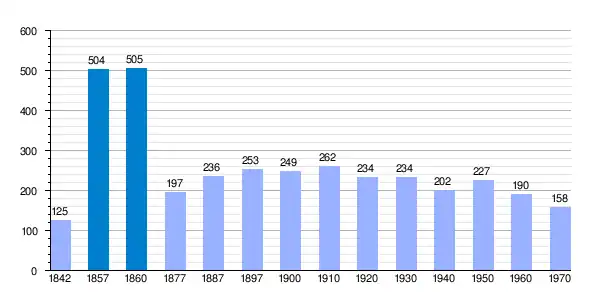 | Gráfica de evolución demográfica de Arenillas de San Pelayo[6] entre 1842 y 1970 |