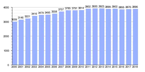 | Gráfica de evolución demográfica de Ares (villa) entre 2000 y 2018 |