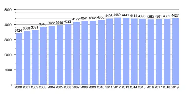 | Gráfica de evolución demográfica de Ares (parroquia) entre 2000 y 2019 |