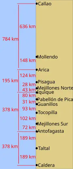 - Lejanía de los puertos de abastecimiento chilenos y apoyo peruano a su Marina de Guerra en la costa peruana, donde se desarrolló la guerra naval