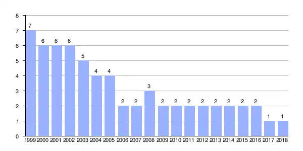 | Gráfica de evolución demográfica de Aroja entre 1999 y 2018 |
