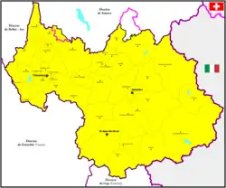 • el 5 de febrero de 1822 cedió una parte de su territorio para la erección de la diócesis de Annecy, que pasó a ser sufragánea, mediante la bula Sollicita catholici del papa Pío VII.[11]