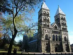 Antes de 1085 se construyó una catedral en Lund, pero es difícil saber si el templo actual está localizado en el mismo sitio. El altar mayor de la cripta de la nueva catedral fue consagrado en 1123 y la catedral y el altar mayor fueron consagrados a san Lorenzo el 1 de septiembre de 1145 por el arzobispo Eskil.