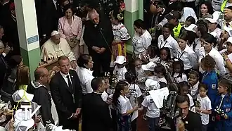 - ↑ El papa Juan Pablo II llegó primero al Aeropuerto Internacional José María Córdova ubicado en el municipio de Rionegro, cercano a la ciudad de Medellín, luego es trasladado en helicóptero de la Fuerza Aérea Colombiana al Aeropuerto Regional Olaya Herrera ubicado en plena zona urbana de la ciudad de Medellín.
