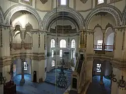 - ↑ Con sus cinco naves, cinco ábsides y trece cúpulas, este último es un ejemplo bastante inusual de arquitectura bizantina.