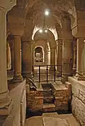 - ↑ Marcel Durliat (1979). «Le développement des cryptes à l'époque carolingienne». Bulletin monumental 137 (2). pp. 165-166.