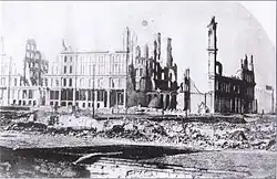 El fuego acabó extinguiéndose, ayudado en esto por la desaparición del viento y la fina lluvia que cayó en la noche del lunes. Desde su punto de partida de la casa O’Leary había quemado prácticamente 48 manzanas hasta la Fullerton Avenue al norte. En el centro de la ciudad y los barrios que lo rodean, no quedaba prácticamente nada de los edificios que se situaban allí antes del incendio. La Torre del Agua de Chicago y la Estación de Bombeo, las dos diseñadas por William W. Boyington en 1869, fueron los únicos edificios que sobrevivieron a la catástrofe.[17]