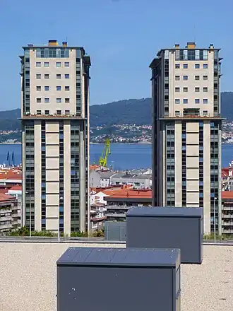 - ↑ García, Thalia (24 de febrero de 2024). «Paseando entre gigantes: Así son los rascacielos que dominan el horizonte de Galicia». El Español (El León de El Español Publicaciones). Consultado el 25 de febrero de 2024.