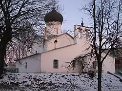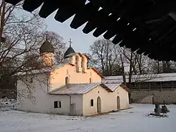 | Iglesias parroquiales de Pskov | Iglesias de cubierta delgada de un único hastial carentes de ornamentación. A menudo tienen una galería cerrada que conduce a un porche y a un sencillo campanario. | Pskov, siglos XIV al XVII | ||
