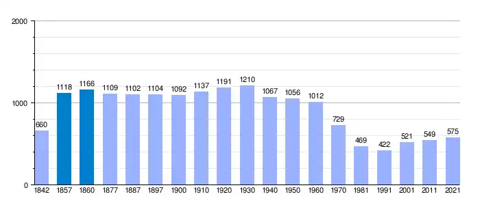 | Gráfica de evolución demográfica de Arrieta[3] entre 1842 y 2021 |