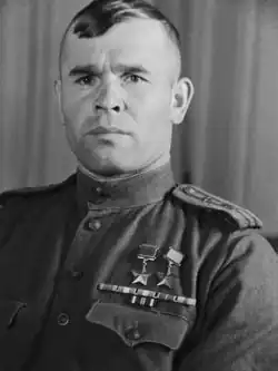 - Héroe de la Unión Soviética, dos veces (4 de febrero de 1944 y 19 de agosto de 1944)