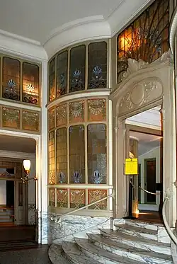 El art nouveau es un movimiento artístico de cambio del siglo XIX que nace en Bélgica en 1893, año en que Victor Horta construye la casa Tassel y que se impone rápidamente en arquitectura, y también en todas las disciplinas de las artes decorativas belgas: escultura, vidriera, esgrafiado, cerámica, mobiliario, papel pintado, litografía, orfebrería, joyería... El estilo desaparece en 1926