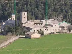 En el primer románico, de influencia lombarda, destacan las iglesias de San Vicente de Cardona, San Pedro de Caserras, Sant Ponç de Corbera y San Jaime Frontañán, así como los monasterios de Ripoll, Breda y San Miguel de Cuixá, y la catedral de Vich, obras promovidas por el abad Oliba.[32] La técnica lombarda destaca por el uso de piedra desbastada de pequeñas proporciones, grandes espacios cubiertos con bóveda, con lesenas y arcos ciegos para ornamentación, y arcos torales y formeros para reforzar bóvedas y muros.[33] La influencia lombarda llega hasta el siglo XII a sitios como Tahull o Valle de Bohí. También hay ejemplos alejados de la influencia lombarda, como San Pedro de Roda o San Saturnino de Tabérnolas (Alto Urgel).