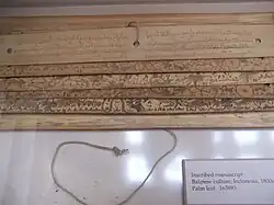 La antigüedad de esta forma de escritura se extiende antes de la invención del papel alrededor del año 100 en China. Toma nota que cada sección de hoja de palmera tenía solo varias líneas, escritas longitudinalmente a lo largo de la hoja, y estaban atadas con un cordel a las otras secciones. La porción exterior estaba decorada. Los alfabetos del Sudeste Asiático tendían a ser abugidas, hasta la llegada de los europeos, que usaban palabras que también terminaban en consonantes, no solo vocales. Otras formas de documentos oficiales, que no usaban papel, incluían los pergaminos grabados javaneses. Este material habría sido más duradero que el papel en el clima tropical del Sudeste Asiático.