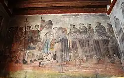 Los primeros monasterios construidos en y alrededor de la Ciudad de México, como los monasterios en las faldas del Popocatépetl tenían elementos o combinaciones de la arquitectura del Renacimiento, plateresco y de la arquitectura gótica. Estos monasterios no tenían mucha decoración, ya que se preocupaban más por los techos altos y por construir las fortalezas para evitar ataques.[31] Sin embargo, la construcción de iglesias con grandes decorados y muchas obras religiosas serían características de la época colonial. La mayoría de estas iglesias se construyeron bajo la enseñanza de la iglesia, pero en algunos casos también para fines políticos, como cuando competían las órdenes religiosas como la Orden Franciscana, la Orden de los Dominicos, conocidos también como Orden de Predicadores, y la Orden de San Agustín. Estas órdenes sirvieron para mantener un dominio de españoles sobre indígenas. Hoy en día, existen construcciones y otras obras de la era colonial en todo el país; donde se pueden encontrar más de ellas es en las zonas altas centrales de la Ciudad de México.[32] El arte colonial se mantuvo con un estilo completamente europeo; colores apagados y sin la adición de elementos nativos como los del movimiento "tequitqui", nunca fueron el centro de las obras, ya que se utilizaron muchos elementos nativos que eran lo más representativos, como el follaje nativo, la piña, el maíz y el chocolate.[33] Muchas de estas obras se pueden ver en los portales, así como en grandes frescos que decoraban el interior de las iglesias y de las paredes de los monasterios que eran cerradas para el público.[34]