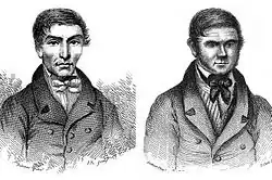 - ↑ El objetivo o propósito de estas miniaturas es un misterio. Los contemporáneos supusieron que fueron hechos para brujería. Otros pensaron que estaban relacionados con los asesinatos de 1828, ya que se encontraron 17 miniaturas en total, tal vez uno por cada una de las 16 víctimas, y otro por el primer 'infortunado' fallecido por causas naturales.