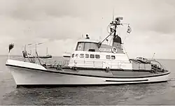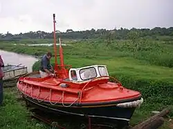 Auxiliar del Ruhr-Stahl, rebautizado como ADES 7. Esta foto es en el Lago Victoria, Uganda, a donde ADES la donó al National Lake Rescue Institute de Uganda.