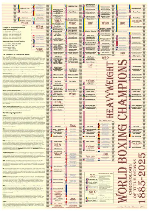 A lo largo de los años muchos boxeadores han sido reconocidos por otras organizaciones mundiales: el Consejo Mundial de Boxeo, que comenzó en 1963, la Federación Internacional de Boxeo, que comenzó en 1983, y la Organización Mundial de Boxeo, que comenzó en 1988.