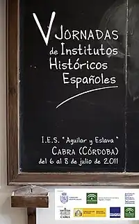 - 5.as Jornadas de Institutos históricos españoles. Cabra (Córdoba), 6 al 8 de julio de 2011. Fueron inauguradas por el presidente de la Junta de Andalucía, José Antonio Griñán,[8] y clausuradas por el ministro de Educación de España, Ángel Gabilondo.