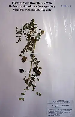 - ↑ «Astragalus contortuplicatus». Global Biodiversity Information Facility (en inglés). Consultado el 28 de octubre de 2022.