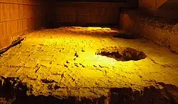 Al primer momento de la vivienda, fechado a finales de Tiberio (14-37) y comienzos de Claudio (41-54), pertenece una estancia que contaba con un pavimento de opus signinum.