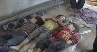 - ↑ «Cifran 1,429 muertos en ataque químico sirio, entre ellos 426 niños». Cambio (México). CNN. 30 de agosto de 2013. Consultado el 6 de septiembre de 2013.