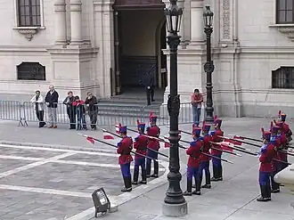 Cambio de guardia de los Húsares de Junín en el Palacio de Gobierno, actividad a la que se dirigían las víctimas.