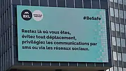 Los vuelos, instalaciones ferroviarias, metro y demás instalaciones de transporte, así como colegios e instituciones públicas fueron cerrados.[22] Asimismo, el Parlamento Europeo fue evacuado y todas las reuniones fueron canceladas.[23]