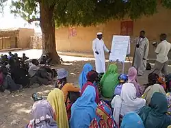 - Desde el año 2000, organizaciones de desarrollo, como el Programa de Desarrollo Basado en Áreas Nacionales (NABDP por sus siglas en inglés), han intentado mejorar los gobiernos locales de Afganistán capacitando a las personas que los integran. El NABDP imparte formación por todo Afganistán en las áreas donde existen bases para gobiernos locales. El NABDP forma a los líderes comunitarios sobre cómo abordar las necesidades locales de la sociedad. Proporcionar a las débiles estructuras locales de gobierno (a veces informales) la capacidad de tratar los problemas pertinentes, refuerza esas estructuras y las acerca a la institucionalización (respaldarlas con leyes escritas y convertirlas en formales y permanentes). El objetivo de esta capacitación en Afganistán es construir gobiernos locales y proporcionar a estas florecientes instituciones la formación que les permitirá satisfacer las necesidades comunitarias más urgentes. Se forma a los líderes en «gobernanza, resolución de conflictos, igualdad de género, planeamiento de proyectos, realización, gestión, aprovisionamiento, financiación y reducción del riesgo de desastres.»[27]
