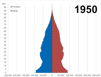![]() Pirámide poblacional de Australia en 2023. | ||