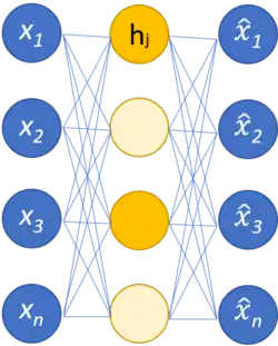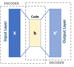 Un autocodificador es un tipo de red neuronal artificial utilizada para aprender codificaciones eficientes de datos no etiquetados (aprendizaje no supervisado).[1][2] El autocodificador aprende dos funciones, la primera es aquella que transforma los datos de entrada y la segunda es la función de decodificación que recrea los datos de entrada a partir de la representación codificada. El autocodificador aprende una representación eficiente (codificación) para un conjunto de datos, normalmente para reducir la dimensionalidad.