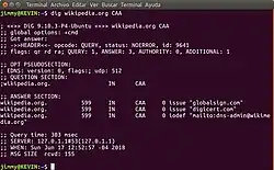 - ↑ Mattias, Geniar (8 de abril de 2017). «CAA checking becomes mandatory for SSL/TLS certificates» (html) (en inglés). Archivado desde el original el 9 de abril de 2017. Consultado el 17 de junio de 2018. «The CAA record is a new resource record, next to the usual A, CNAME, MX, TXT, ... records you might already know. The syntax is as follows; CAA <flags> <tag> <value> Which translates to; flag: An unsigned integer between 0-255. tag: An ASCII string that represents the identifier of the property represented by the record. value: The value associated with the tag».