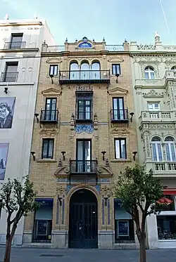 A la derecha de la avenida, en el ensanche denominado calle Adolfo Rodríguez Jurado, en el cruce con Santo Tomás, se encuentra una buena representación de la arquitectura moderna en el edificio de viviendas realizado en 1935-36 por el arquitecto José Galnares Sagastizabal para el conde de Ybarra, de estilo asociado a la arquitectura del Movimiento Moderno racionalista y que está inscrito en el Catálogo General del Patrimonio Histërico Andaluz, con carácter genàrico colectivo.[11] A continuación se encuentra el antiguo Teatro Coliseo España, actual sede de la Delegación de Economía y Hacienda de la Junta de Andalucía, proyecto de los arquitectos José y Aurelio Gómez Millán del año 1925.