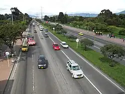 Avenida cerca al Parque Simón Bolívar al fondo la Rueda Millenium del Parque el Salitre. | |||||||||