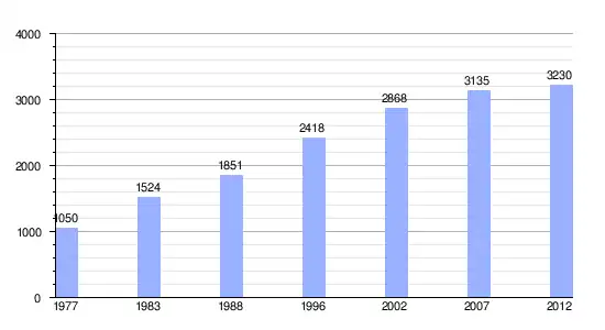 | Gráfica de evolución demográfica de Avera entre 1977 y 2012 |