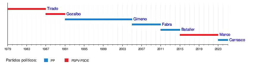 | 2019-2023 | PSPV-PSOE+Compromís+UP-CSeM-EUPV[n. 8][10] | 15/27 |