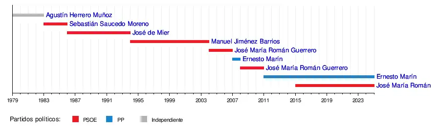 Gobierno 2023-2027 (13) 11 PSOE 2 IU Oposición (12) 9 PP 3 Vox | |