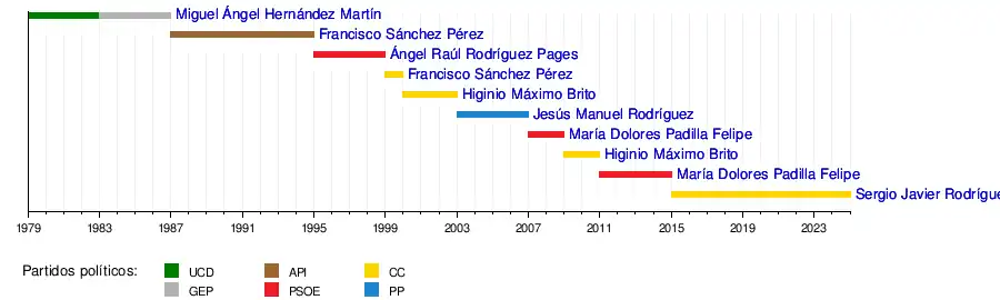 | 2015-2019 | Sergio Javier Rodríguez Fernández | Coalición Canaria (CC) |