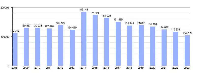 | Gráfica de evolución de la deuda viva del Ayuntamiento entre 2008 y 2023 |