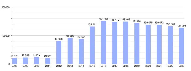 | Gráfica de evolución de la deuda viva del Ayuntamiento entre 2008 y 2023 |