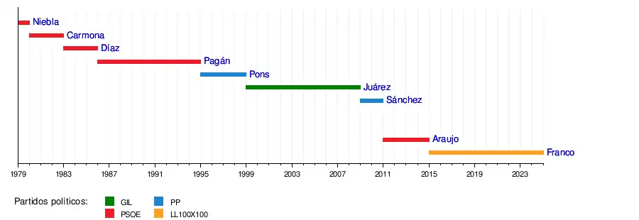 | 1979-1980 | Francisco Niebla Molina[10] | Partido Socialista Obrero Español (PSOE) | |