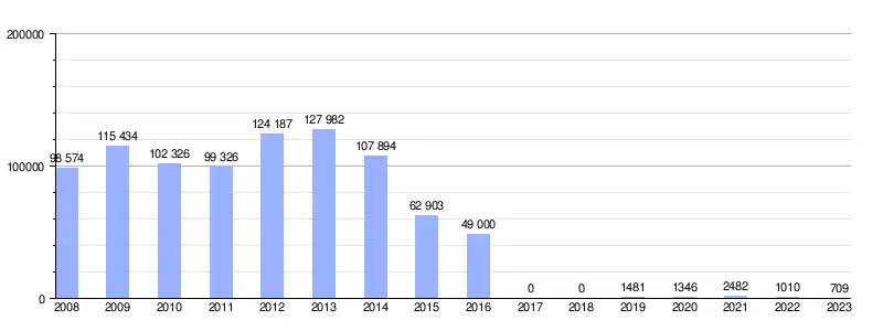 Deuda viva del Ayuntamiento de Las Palmas de Gran Canaria, en miles de euros, según datos del Ministerio de Hacienda[7] |
