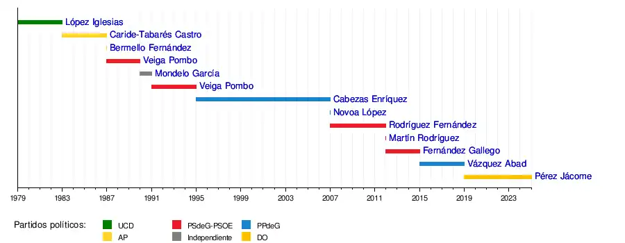 Está presidido por el alcalde, que desde 1979 es elegido democráticamente por sufragio universal. Tras las Elecciones municipales de España de 2023, los partidos Democracia Ourensana, PP, PSOE y BNG obtienen representación parlamentaria. De acuerdo con los resultados, los asientos han quedado distribuidos de la siguiente forma: DO: 10, PP: 7, PSOE: 6 y BNG: 4.