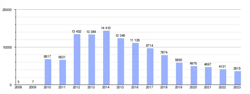 | Gráfica de evolución de la deuda viva del Ayuntamiento entre 2008 y 2023 |